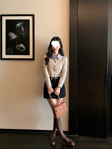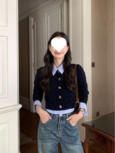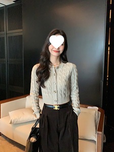 pusumede 里约慢调 麻花毛衣开衫女外穿短款圆领气质打底针织上衣