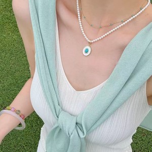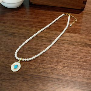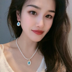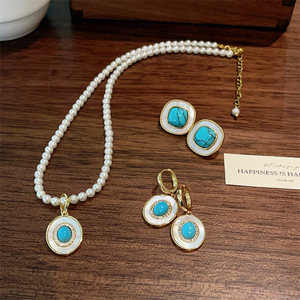 轻奢精致高级感套装绿松石白贝母万能扣吊坠珍珠项链叠戴气质耳饰