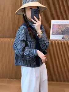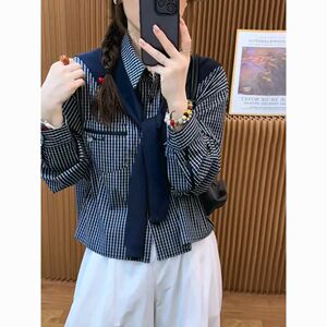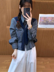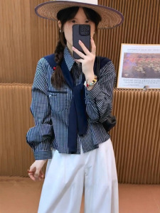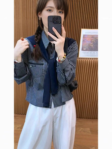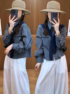2025早秋韩系格子休复古衬衫套装披肩韩范洋气百搭设计感上衣
