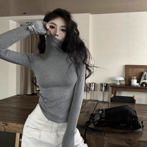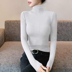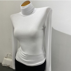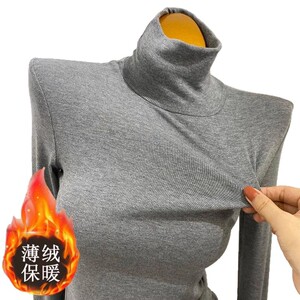 高领长袖T恤2025新款女秋冬白色紧身磨毛保暖上衣弹力内搭打底衫