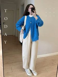秋冬季极简显白毛衣外套针织开衫女克莱因蓝毛绒绒气质感上衣