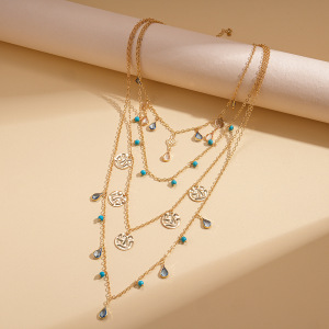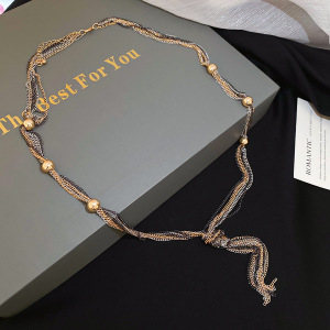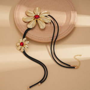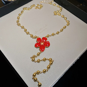 欧美跨境花朵镂空缠绕水滴可抽拉长项链轻奢高级感毛衣链百搭项饰