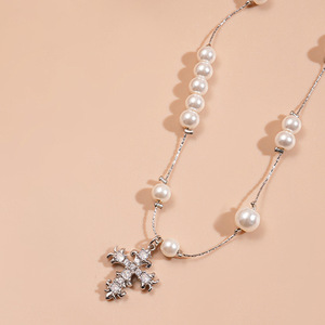 73#项链-银色-白色-小号十字架