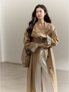 复古气质立领风衣女条纹袖宽松显瘦感长外套卡其色米白色氨纶