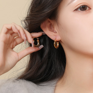 14k真金电镀滴油豹纹圆形吊坠耳环小众复古设计耳扣中古气质耳饰