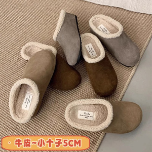 软皮版~厚底增高复古加绒勃肯鞋女外穿小个子一脚蹬包头保暖棉鞋