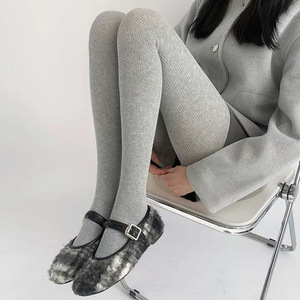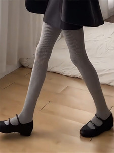 初秋灰色连裤袜miu系竖条纹纯色打底裤休闲百搭学院风长袜配长靴