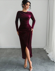 2025欧美跨境秋冬新款扭缝修身显瘦长袖丝绒连衣裙女中长款裙子女