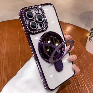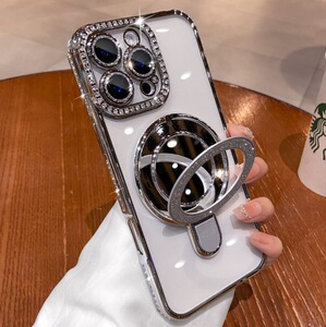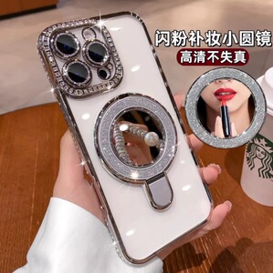 适用iphone17promax闪钻闪粉镜子支架手机壳苹果16水钻优盾磁吸壳