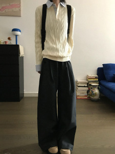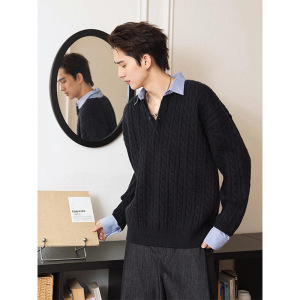绞花假两件拼接条纹亨利领毛衣男款秋季慵懒高级感cleanfit针织衫