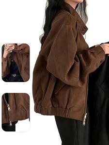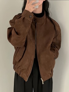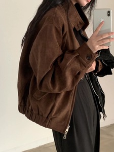 美拉德复古棕色短外套女秋冬学院风上衣韩系chic宽松短款夹克美式