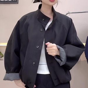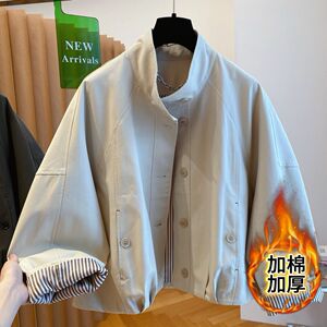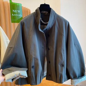 欧货英伦风立领夹克外套女2025新款宽松休闲内里条纹短款风衣上衣