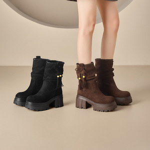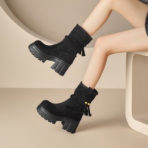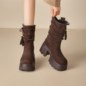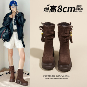流苏美拉德靴子长筒靴女2025秋冬新款废土风厚底骑士西部牛仔靴