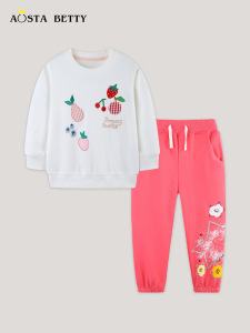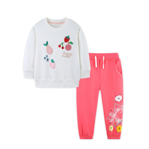 工厂直销欧美风女童长袖套装卡通刺绣卫裤两件套针织棉中小童童装