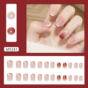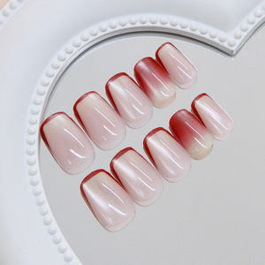 微醺复古红色法式猫眼渐变时尚简约欧美ins风可拆卸穿戴甲30片