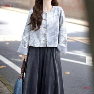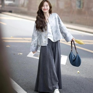 连衣裙秋装搭配一整套大码新中式国风提花外套感阔腿裤时尚两件套