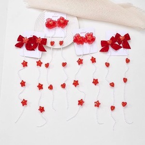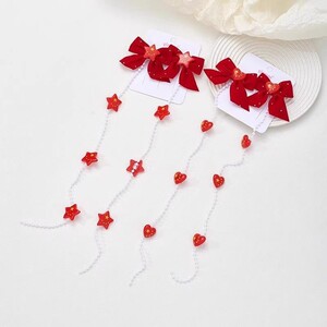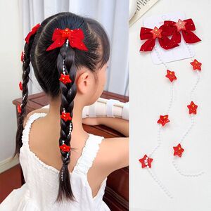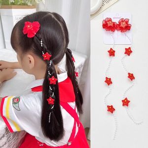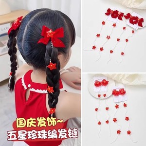 2025新款国庆发饰红色蝴蝶结五星图案珍珠编发链发夹甜美 国潮头