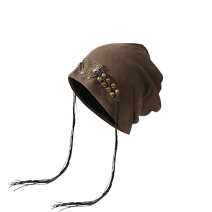 扎染流苏串珠冷帽女春秋季复古小众百搭包头帽大头围显脸小帽子潮