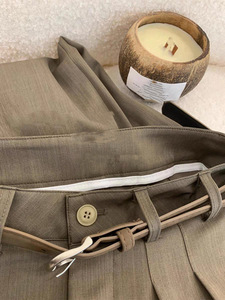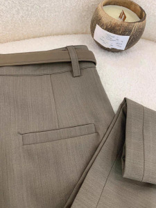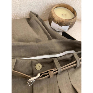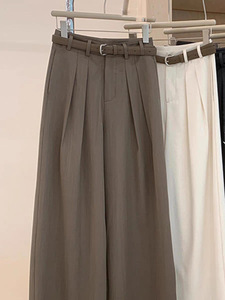 CHAO级推荐!韩式浅咖色精纺羊毛休闲女裤西裤显瘦高腰百搭阔腿裤