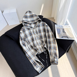 小众松弛感撞色格纹连帽衬衫外套,小众到不容易撞款 9502