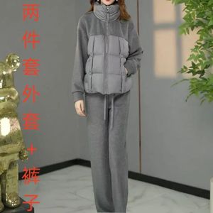 高档两件套设计师款加绒加厚腔调立领羽绒棉服两件套装套裤一整套