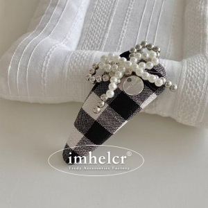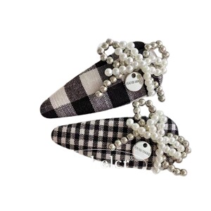 千鸟格串珠蝴蝶结发夹