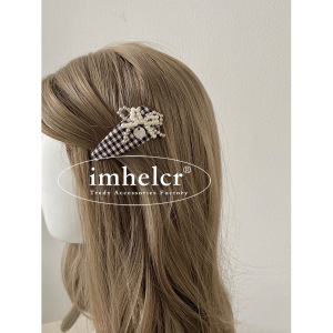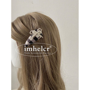韩国气质千鸟格串珠蝴蝶结发夹时尚小香风刘海夹掰掰夹边夹发饰女