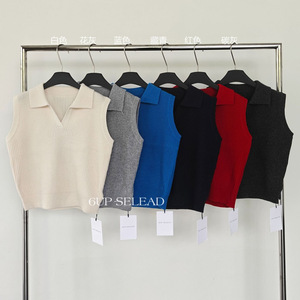 6UP秋韩系全羊毛翻领毛衣女背心马甲广州十三行新款毛织上衣50391