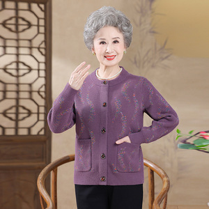 中老年人女妈妈秋冬针织外套60-70岁80老人奶奶宽松大码开衫上衣