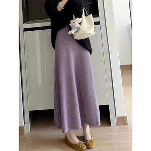 紫色【修身/半身裙/毛呢/秋装/洋气/中长款/复古/秋冬季】