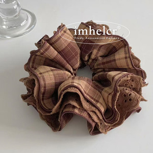 秋日美拉德棕格纹蕾丝花边小蛮腰大肠发圈高级洋气韩系新款发饰女
