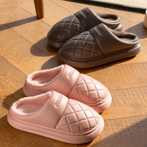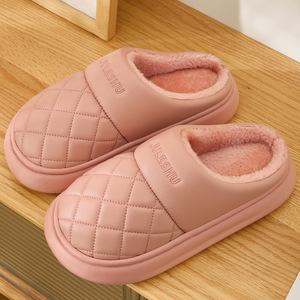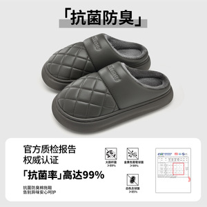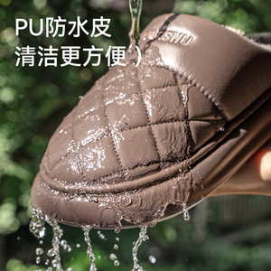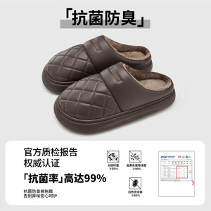 皮面防水棉拖鞋男冬季室内居家厚底加绒保暖外穿防滑加厚毛绒棉拖