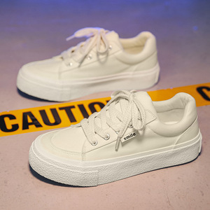 夏季透气黑白色帆布鞋男日系小众简约厚底滑板鞋ins潮鞋子1193