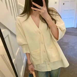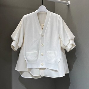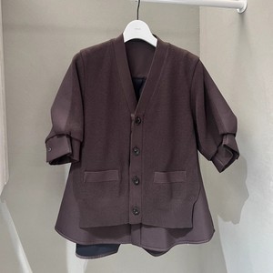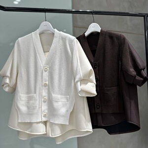 FOG SACAI 25秋款拼接针织开衫宽松休闲短袖外套百搭显瘦中袖上衣