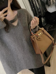 镂空灰色v领针织毛衣女秋冬2025新款设计感小众高级感慵懒风上衣