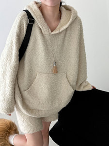 NS 韩系软糯保暖羊毛连帽毛衣+短款秋冬女甜美针织休闲套装ss817