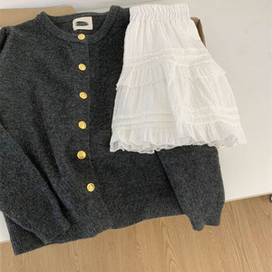 推荐!韩里韩气~深灰色金扣针织开衫上衣高级感软糯毛衣外套女