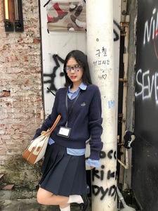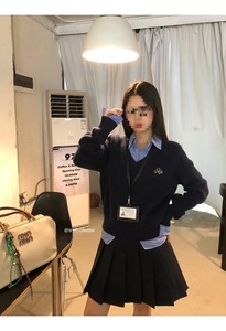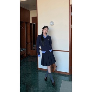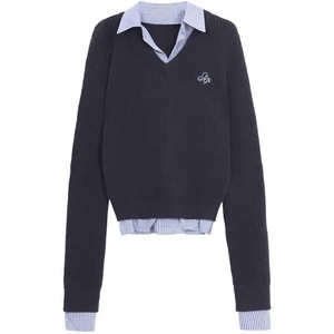 内搭毛衣女秋冬新款蓝色慵懒风感假两件针织打底衫