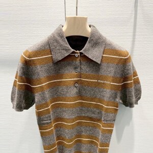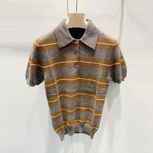 深圳南油高端女装2025秋季法式学院风刺绣条纹翻领针织衫T恤上衣