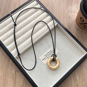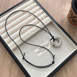 时尚锤纹镶钻皮绳圆环长款项链女小众轻奢高级感毛衣链配饰可调节