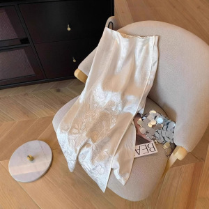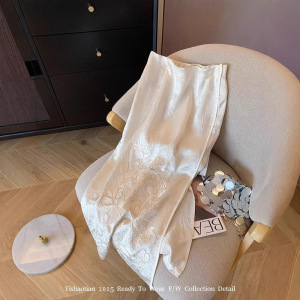新中式半身裙醋酸缎面刺绣开叉女春夏新款高级感独特气质显瘦裙子