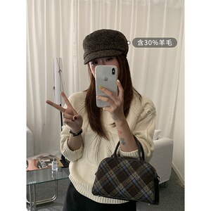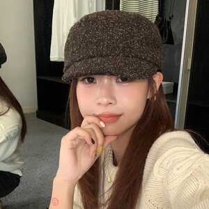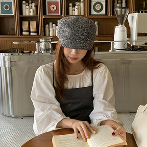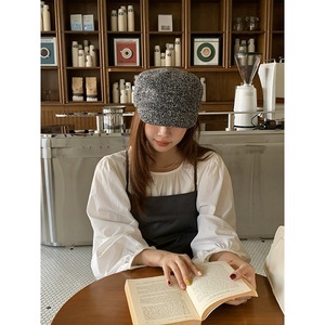 侧面毛呢鸭舌贝雷帽女秋冬新款覆古画家报童海军帽日系英伦八角帽