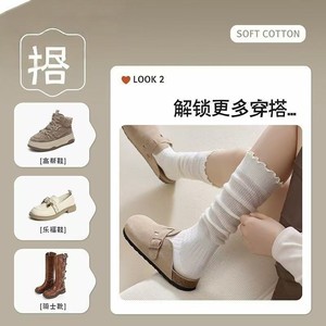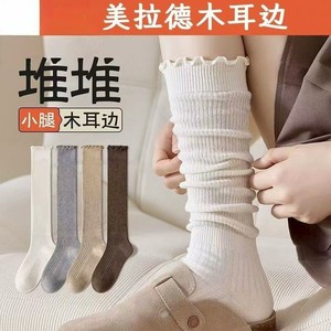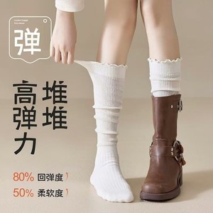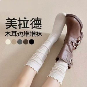 木耳边小腿袜子女春秋日系花边jk中筒堆堆袜美拉德搭配长靴及膝袜
