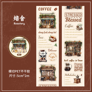 咖啡镇复古系列造景和纸胶带创意背景贴纸手账DIY素材装饰pet胶带