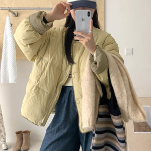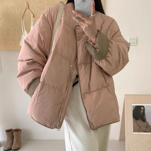 羽绒服女2025冬季韩版撞色圆领小个子面包服简约宽松短款保暖外套
