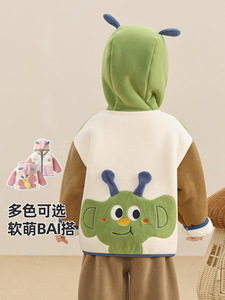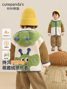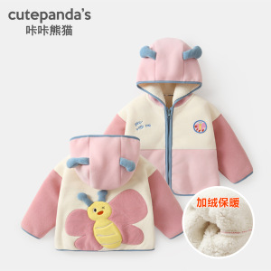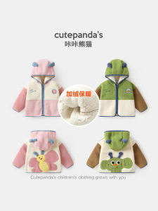 咔咔熊猫男童加绒连帽外套女童冬装儿童冬季保暖上衣宝宝秋冬衣服