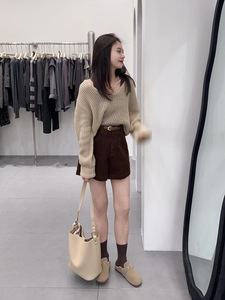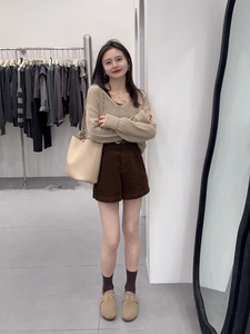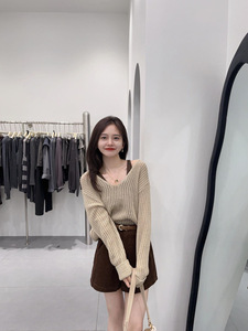 2025秋季新款韩系设计感镂空针织罩衫百搭挂脖背心高腰短裤三件套