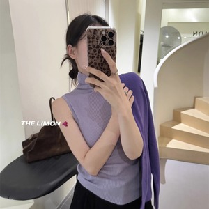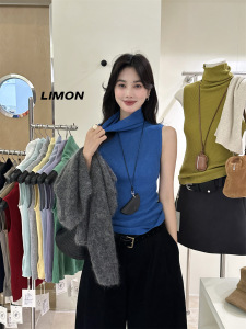 THE LIMON柠檬绿茶2025冬季韩系高级感微透高领针织背心百搭毛衣