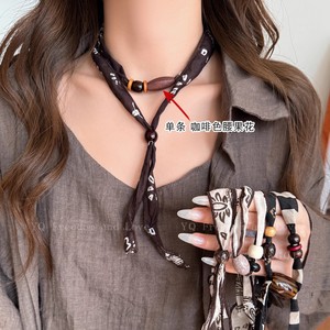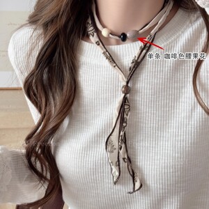 2025新款咖色腰花果丝巾项链女搭配衣服装饰围脖长毛衣链高级配饰