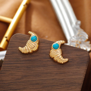 独特设计时髦个性牛角包耳钉女2025秋冬小红书爆款绿松石耳环耳饰